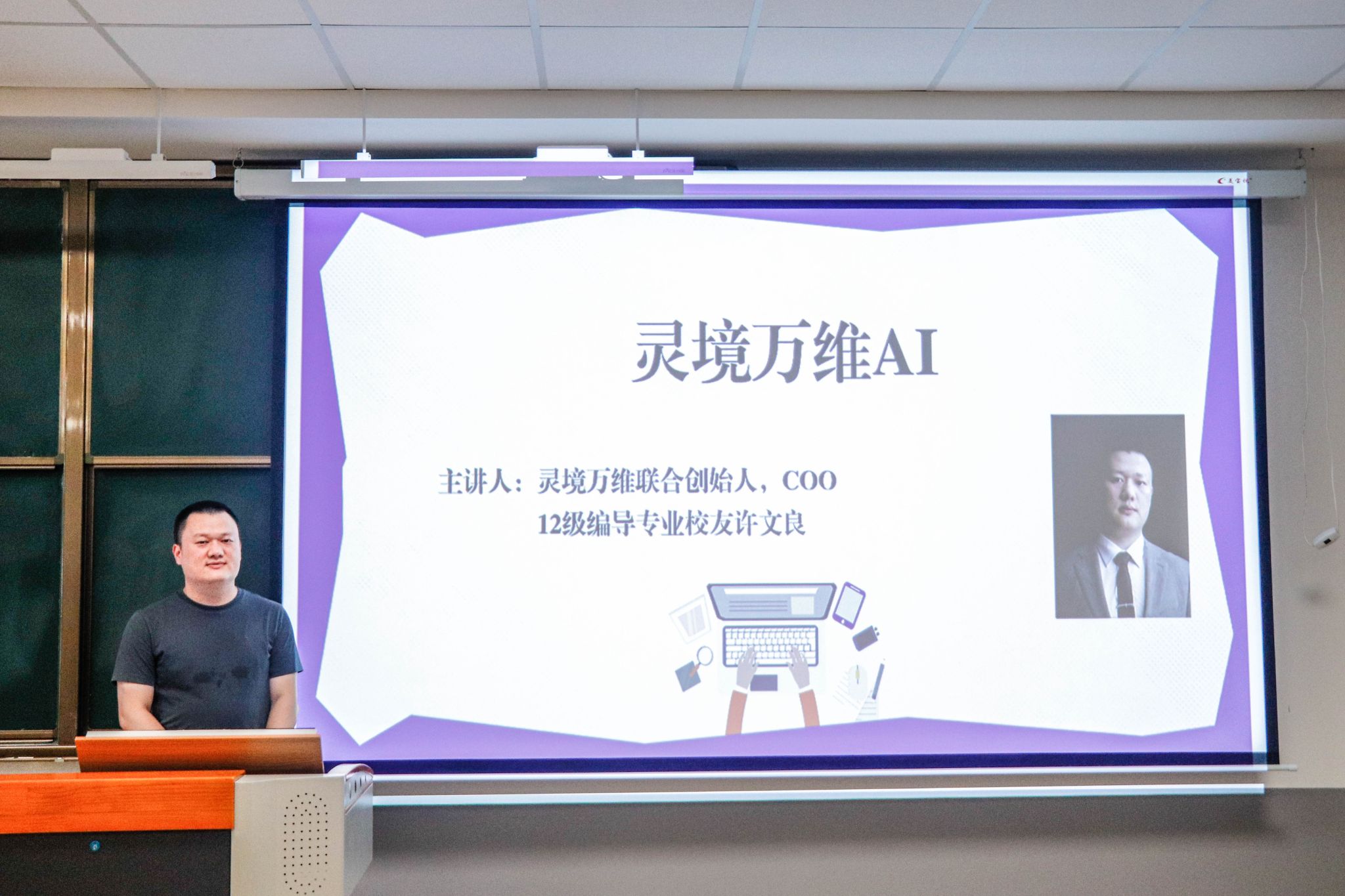 许文良校友以灵境万维的经营方式和发展路线为切入点,比较了传统动画与其公司新型AI动画制作工具在成本与产能上的显著差距,展示了AI工具在动画创作中的颠覆性优势。他表示,年轻人要主动拥抱行业变革,用发展的眼光看待AI、用好AI,争当行业领头人。他诚挚邀请同学们加入企业,投身AI动漫行业,共创美好未来。