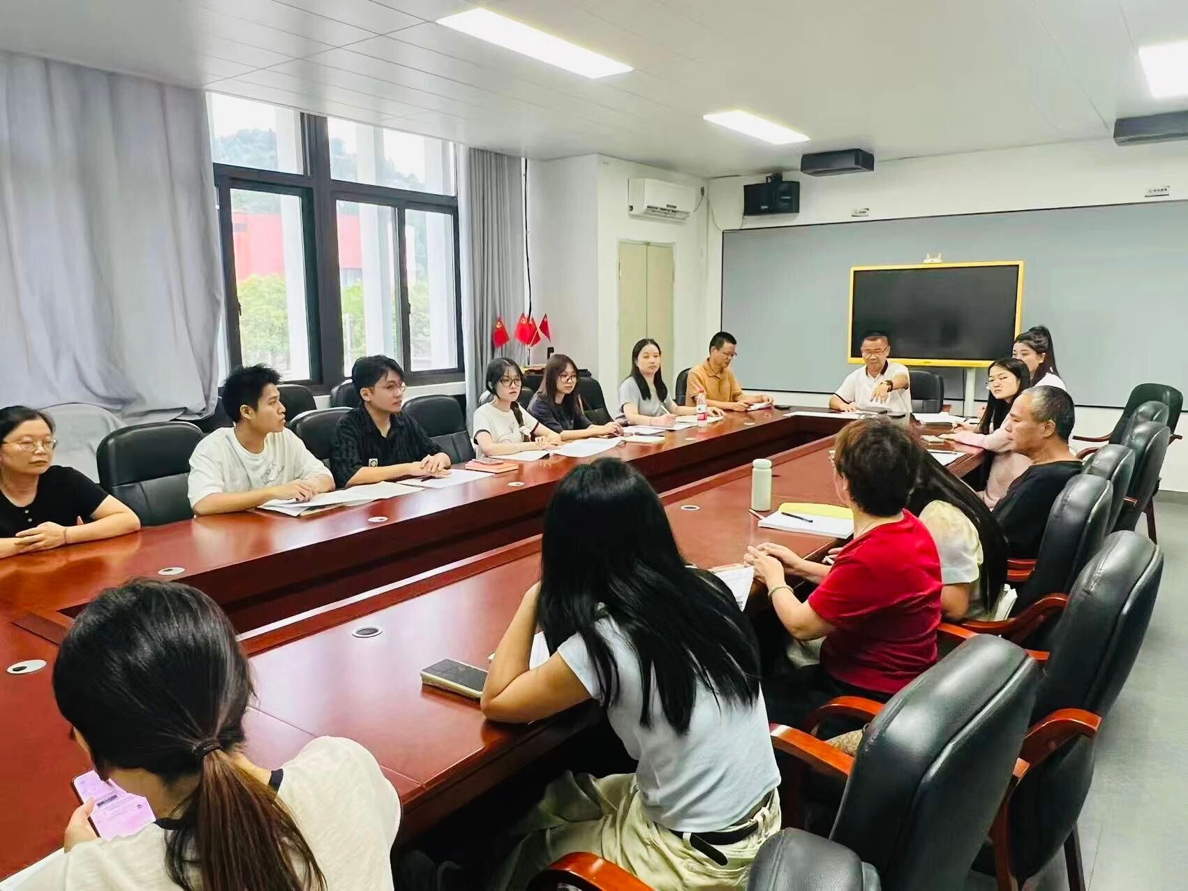 图为福州高新区美术中等职业学校召开的“实习生—指导教师结对欢迎会”,会上同步布置了实习任务。