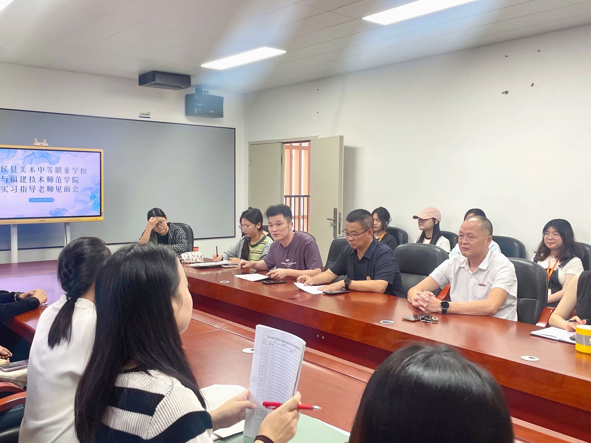 活动启动之初,闽侯县美术中等职业学校校长林发泉,副校长陈志勇携相关负责人与指导老师,与我院广告学专业主任林惠仙、副主任付晶晶及专业教师、首批见习学生共同出席见面会。