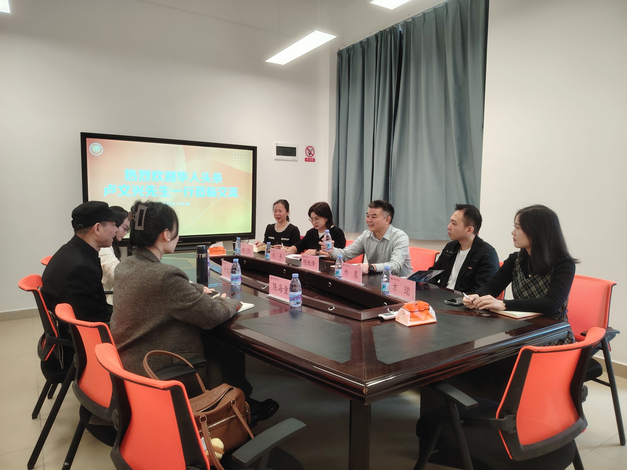 卢文兴总编辑对我院的专业布局与国际传播特色给予高度认可。他介绍,“华人头条”以“联通全球,服务华人”为使命,构建了App、PC、手机网页、微信小程序四大传播矩阵,深耕以侨为桥的融媒体传播,致力于中华文化传播与侨心侨力凝聚。他表示,学院办学定位与“华人头条”的发展目标高度契合,双方具有广阔的合作空间。吴丽莎副总经理介绍了平台在华文资讯传播以及会展策划执行、新媒体教育培训、融媒体产品研发等方面的业务开展情况与品牌特色。