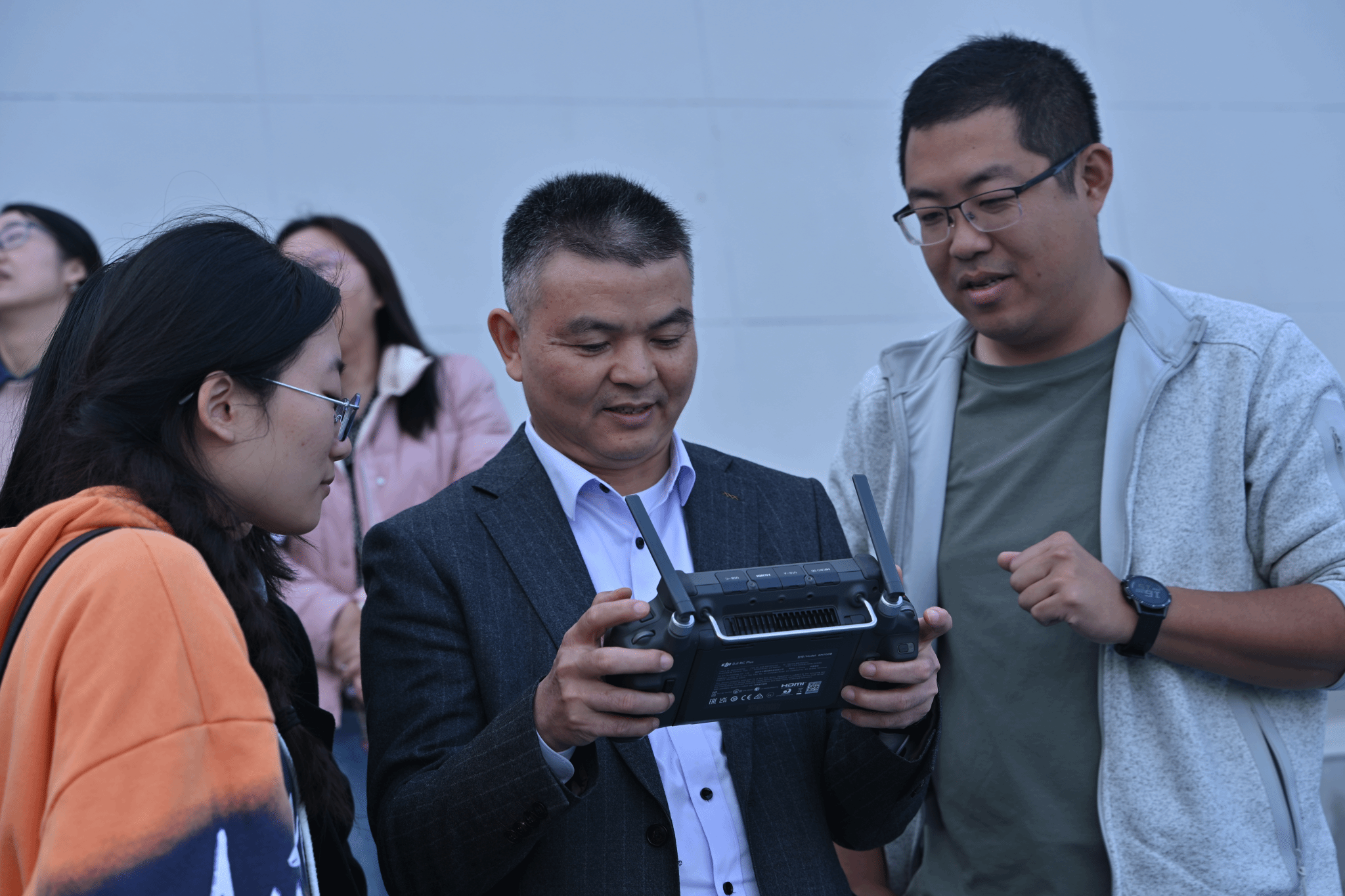 科普讲座结束后,学院师在求真园操场参与实操体验。多旋翼无人机、航测航拍等先进设备系数亮相,精准演示悬停定位、智能避障、航线规划等核心功能,专业演示引得现场阵阵喝彩。在专业教练细致指导下,同学们分组有序实操,亲手尝试无人机起飞、悬停及平稳降落,沉浸式感受前沿技术魅力,切实实现理论认知向实践能力的转化,现场互动氛围热烈高涨。