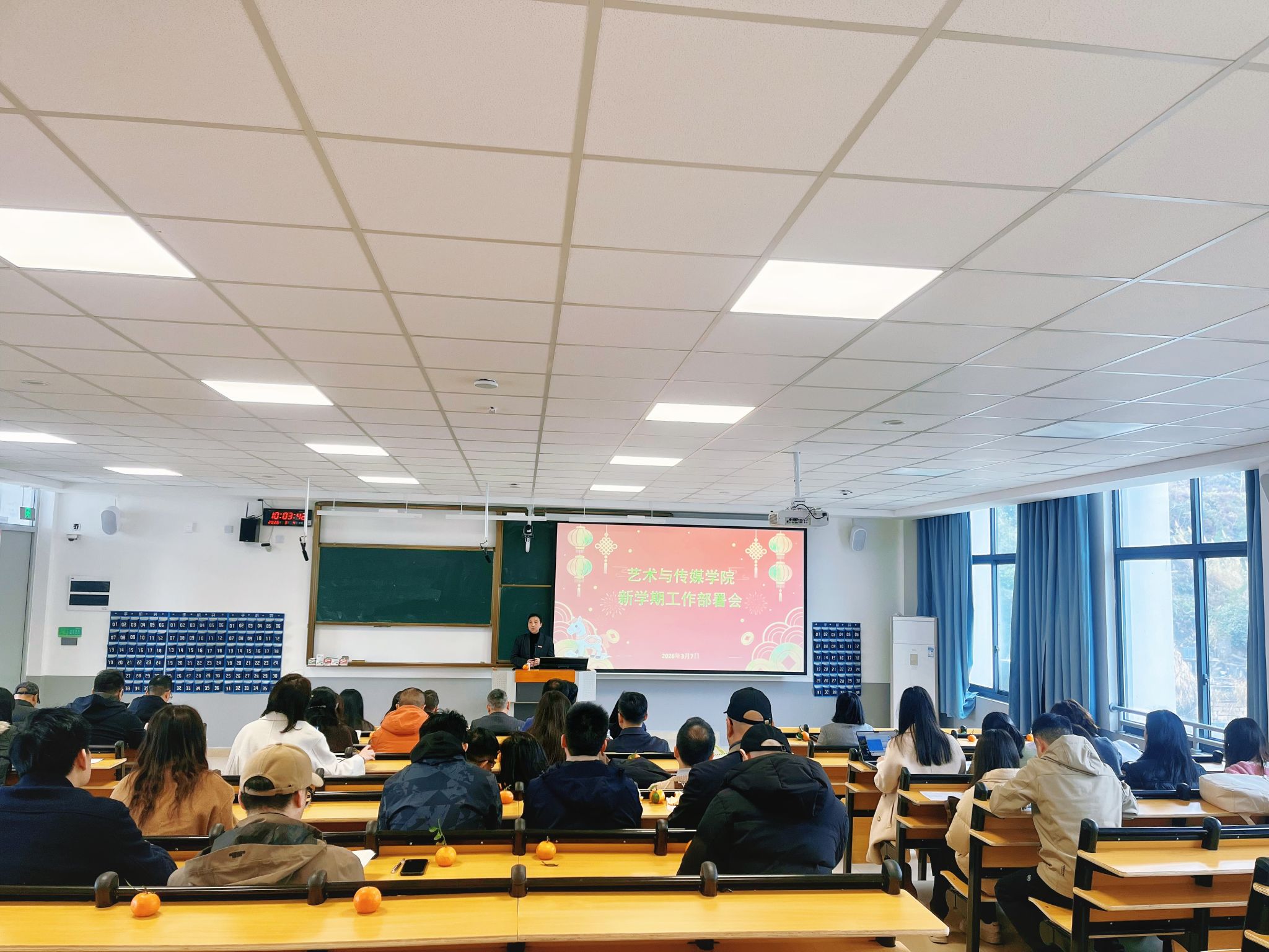3月4日上午,艺术与传媒学院召开新学期教职工大会。学院党委书记吴蔚平主持会议并讲话。副院长(主持工作)陈致烽作开学工作部署。全体教职工参加会议。