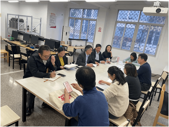 与会人员实地调研至善楼工艺美术专业场所、教学实验设施设备等使用情况,并就资源共享、专业融合、人才培养等问题进行深入研讨。