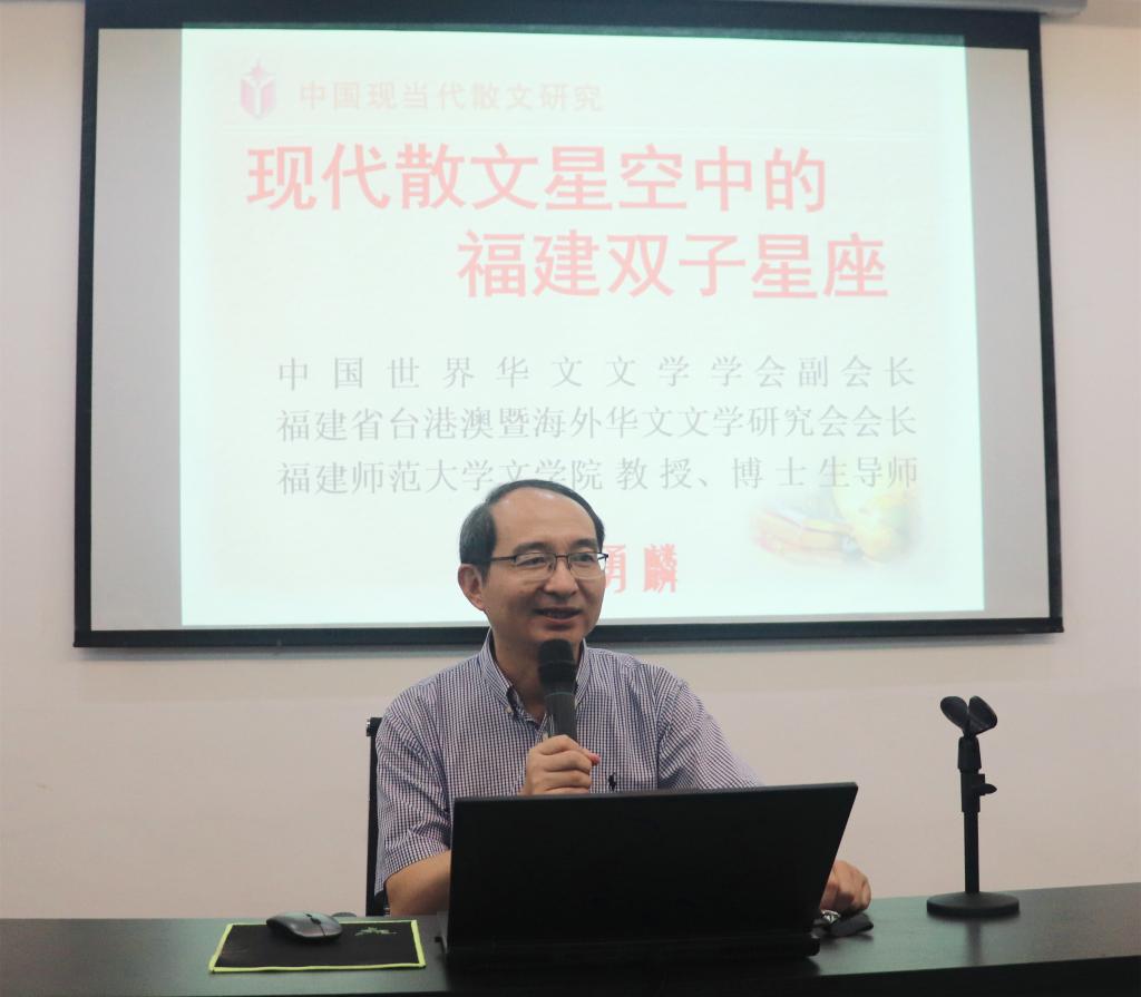 6月9日下午,福建师范大学文学院二级教授、博士生导师、中国世界华文文学学会副会长袁勇麟应邀来校,在百德书院为我院师生作专题讲座。讲座由李光辉老师主持,汉语言文学专业部分师生皆到场聆听。