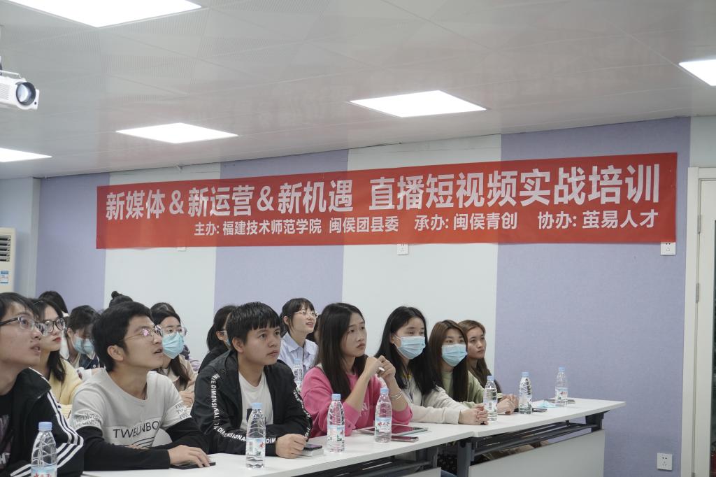 随后,黄清椿还为我院广告学专业学生,带来“新媒体、新运营、新机遇 直播短视频实战培训”专题讲座,现场教学网络直播、短视频创作等新媒体理论和实务知识。同学们还趁热打铁,现场在抖音平台上发起了一场网络直播,将讲座上学到的知识运用到实践中去。