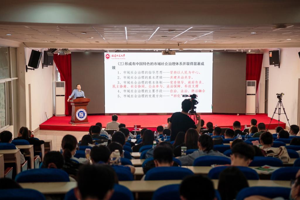 此次主题讲座,是福清市市域社会治理现代化研究院系列讲座的首场讲座,由校地合作的福清市市域社会治理现代化研究院主办,讲座得到了福清市委政法委和学校的高度重视,福清市委政法委副书记林雪枫亲自带领30余名福清市乡镇政法委员们出席了本次讲座,我院院长陈致烽教授和百余位师生参加讲座。