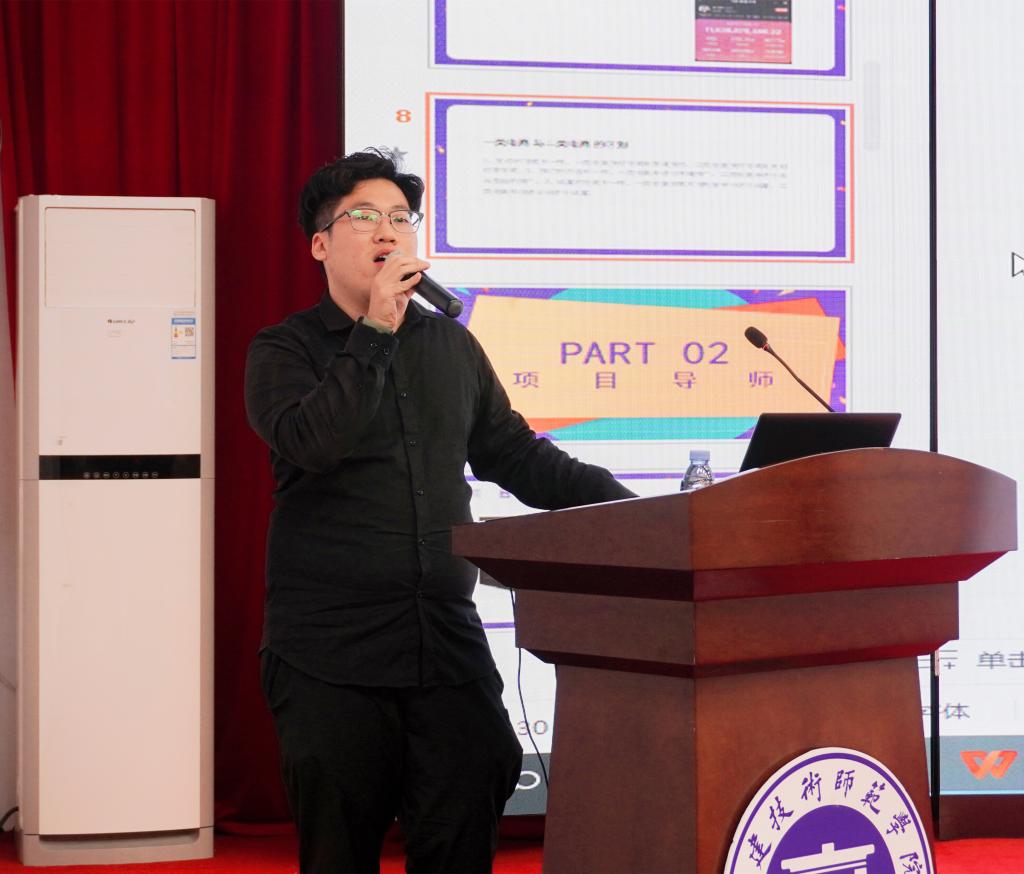 许良元董事长首先介绍了公司业务板块,以及作为文法学院共建实训基地所具备的优势条件。林俊勤总经理以“新媒体时代运营与直播”为主题,围绕新媒体项目、项目导师、项目展示、未来展示四个方面讲述,重点阐发了对“流量”一词的理解,解答了师生对于电商行业的困惑,并鼓励同学们顺应时代潮流,将科技与传统行业相结合,共话未来。公司其他项目导师讲解了直播所需的“天时地利人和”条件以及开播前的准备,包括确定场景、选择设备等,并让同学们现场“化身”主播与配播,体验直播带货。