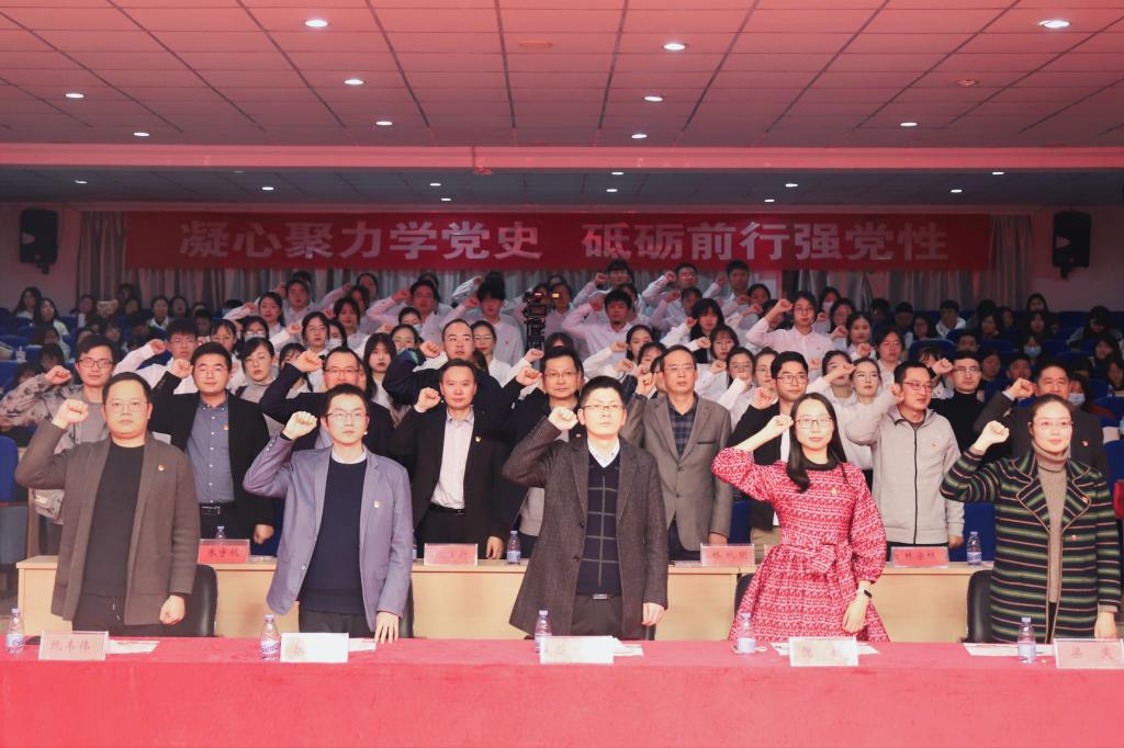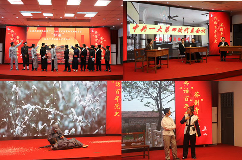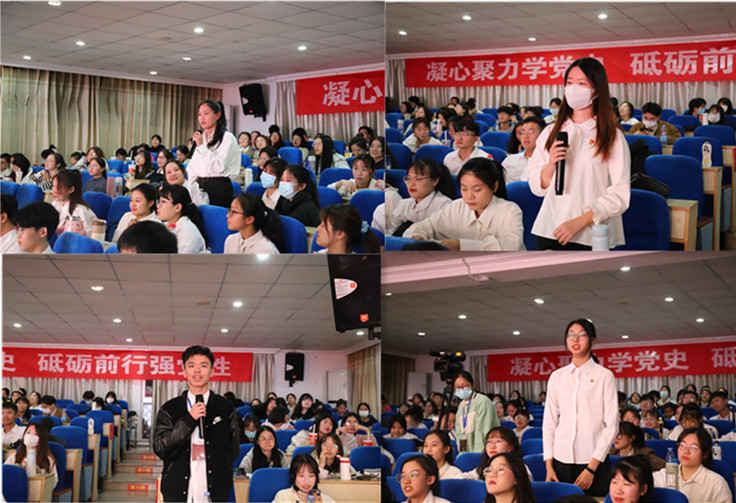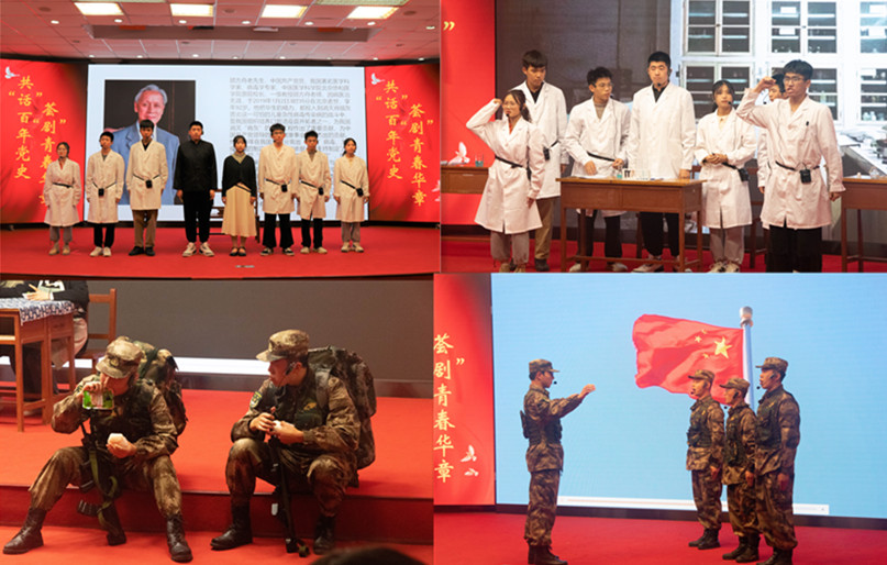 学生团队以中国共产党成立一百周年来发生的真实故事为背景,结合实际进行适当改编,展示了《红船》《七根火柴》《大喜的日子》《顾方舟》《清澈的爱》《梦过留痕》等波澜壮阔的百年党史画像、立传、明德的精品力作,书写了百年党史艰难历程,创新艺术表达,强化正确价值导向,成为党史学习教育得力的“影像教科书”。期间,党史知识竞答互动串联起了党的百年光荣历程,引领大家在寓教于乐中感悟伟大建党精神。表演完毕,领誓人邱惠珊带领全体师生党员重温入党誓词,庄严宣誓。