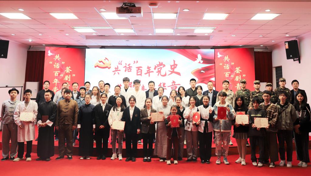 为深入学习贯彻党的十九届六中全会精神,进一步推动党史学习教育走深走实,12月10日晚,我院和外国语学院联合主办的“共‘话’百年党史,荟‘剧’青春华章”党史剧总决赛于校科学楼报告厅举行。我校党委副书记林海峰、校工会主席倪学新、福清三福文化研究院院长、福清市政协文史委副主任林秋明,福清市非遗研究会副秘书长林信,东南网记者黎臻懋等应邀到场指导,校工会、马克思主义学院、学生工作部、校团委等单位代表,以及我院党委书记郭永云、副院长温志拔,外国语学院党委书记林钦松,师生代表共计二百余人参加活动。