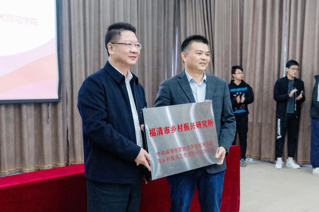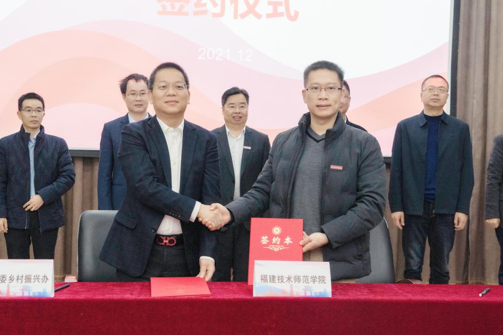 签约仪式上,福清市委副书记陈恒东为福清市委乡村振兴办与福建技术师范学院共同成立的“福清市乡村振兴研究所”进行授牌,并宣布了“艺术风,乡建行”福清市首届玉融乡村短视频创意大赛正式启动。陈志勇副校长和福清市副市长王言霖分别代表我校和福清市委乡村振兴办签署乡村振兴战略合作框架协议,并与福建福清汇通农村商业银行签署政、银、校三方合作项目协议。