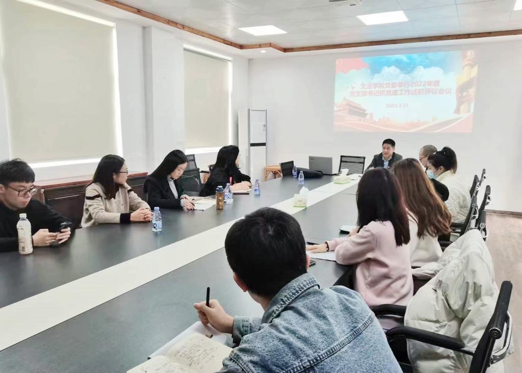 3月31日下午,我院党委在百德书院三楼会议室召开2022年度党支部书记抓基层党建工作述职评议考核会议,由院党委书记郭永云主持。 院党委成员、各党支部书记、组织员、全体辅导员以及党员代表参会。