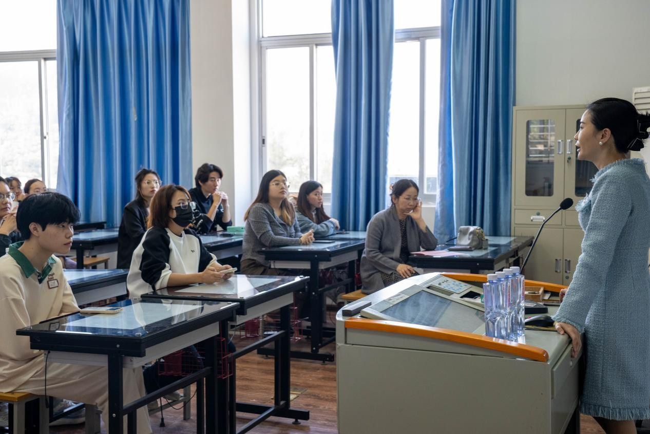 陈真主任向同学们介绍了东南广播的发展概况,强调了东南广播在两岸交流中发挥的重要作用。她结合工作实践,分享了自己对传统媒体转型发展的思考。她认为广播在地性和贴近性的内容特点,使其在新媒体的传播中仍具有一定优势。