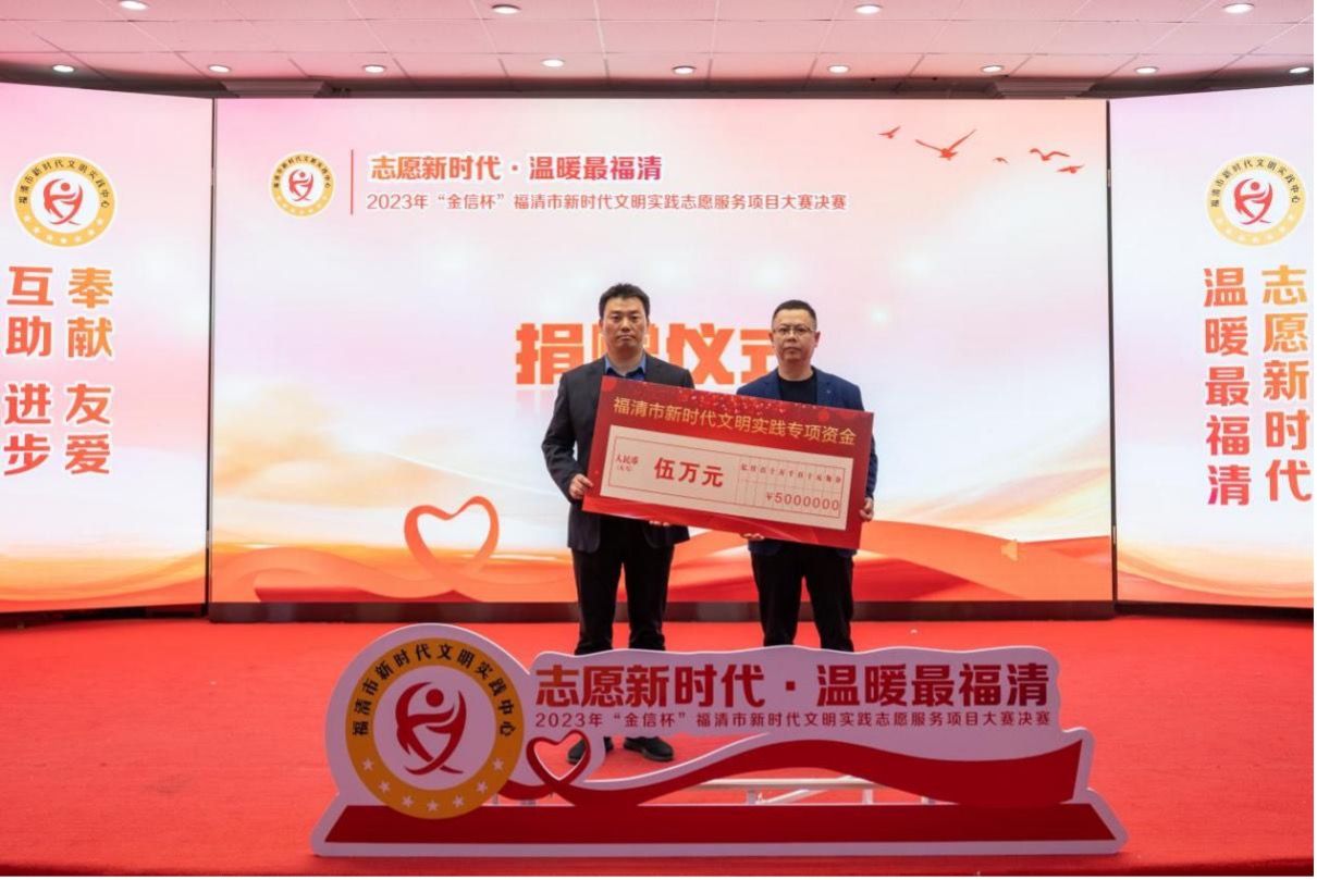 为了支持本次大赛,金信期货有限公司副总经理林青、福建博尔泰能源科技有限公司董事长韩健、福建康达健康管理集团董事长章华生三位企业家慷慨捐赠了专项资金,为志愿服务项目提供了有力的资金支持。这些资金将用于支持优秀志愿服务项目的开展和推广,进一步推动福清市新时代文明实践工作的深入开展。