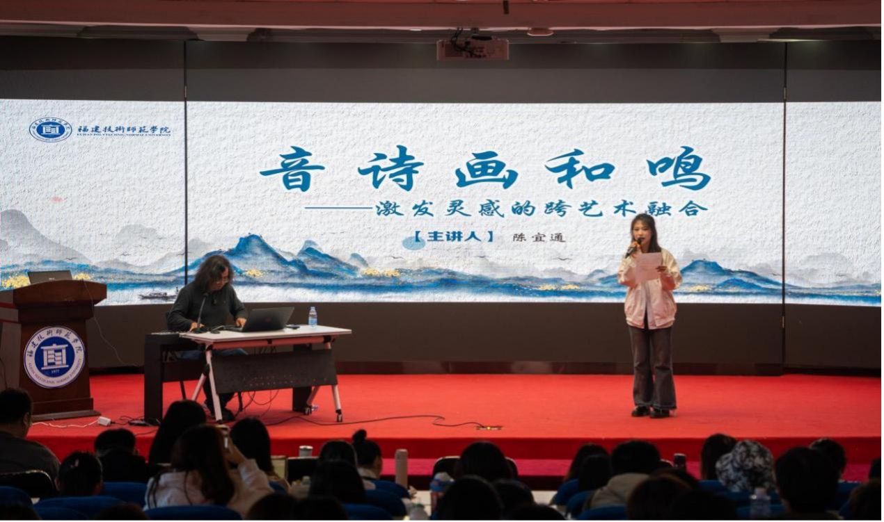 2023年12月14日下午,《音诗画和鸣——激发灵感的跨艺术融合》讲座在五马山校区科学楼金泰学术报告厅举办。本次讲座主讲嘉宾为作曲家、钢琴即兴演奏家、中国音乐家协会会员、福建书画研究会会员陈宜通。艺术与传媒学院广播电视编导师生代表参与了此次论坛。讲座由赵舟敏副院长主持。