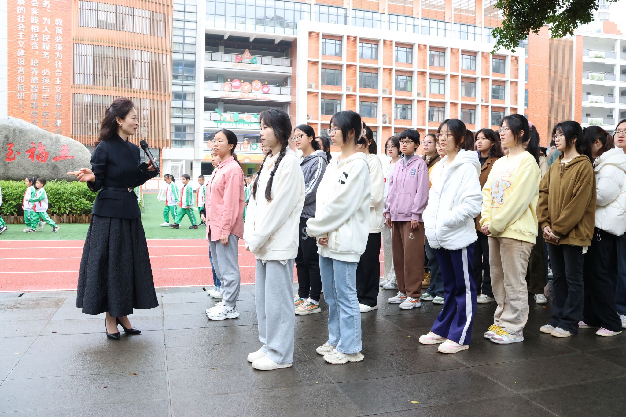 福建技术师范学院艺术与传媒学院党委书记郭永云、福清市实验小学教育集团总校长林海燕、副校长黄华、郭进翌、林晓斌,广告学(师范)专业主任林惠仙、专业副主任付晶晶出席了此次活动,广告学专任教师、辅导员、22级广告学专业全体学生,以及实小教育集团总部全体师生共同见证了实践基地的揭牌。活动由福清市实验小学教育集团教导处副主任林秀芳主持。