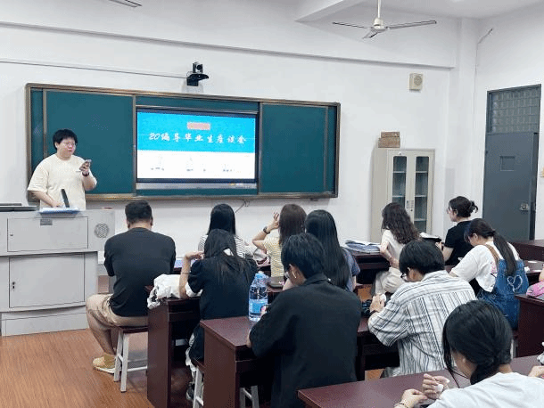 会上,专业主任蒋潇洋首先强调了实习对于毕业生们的重要性,认为实习是理论与实践相结合的关键环节,也是未来职业生涯的坚实基石。他鼓励学生们积极面对挑战,与老师保持沟通,共同规划未来。