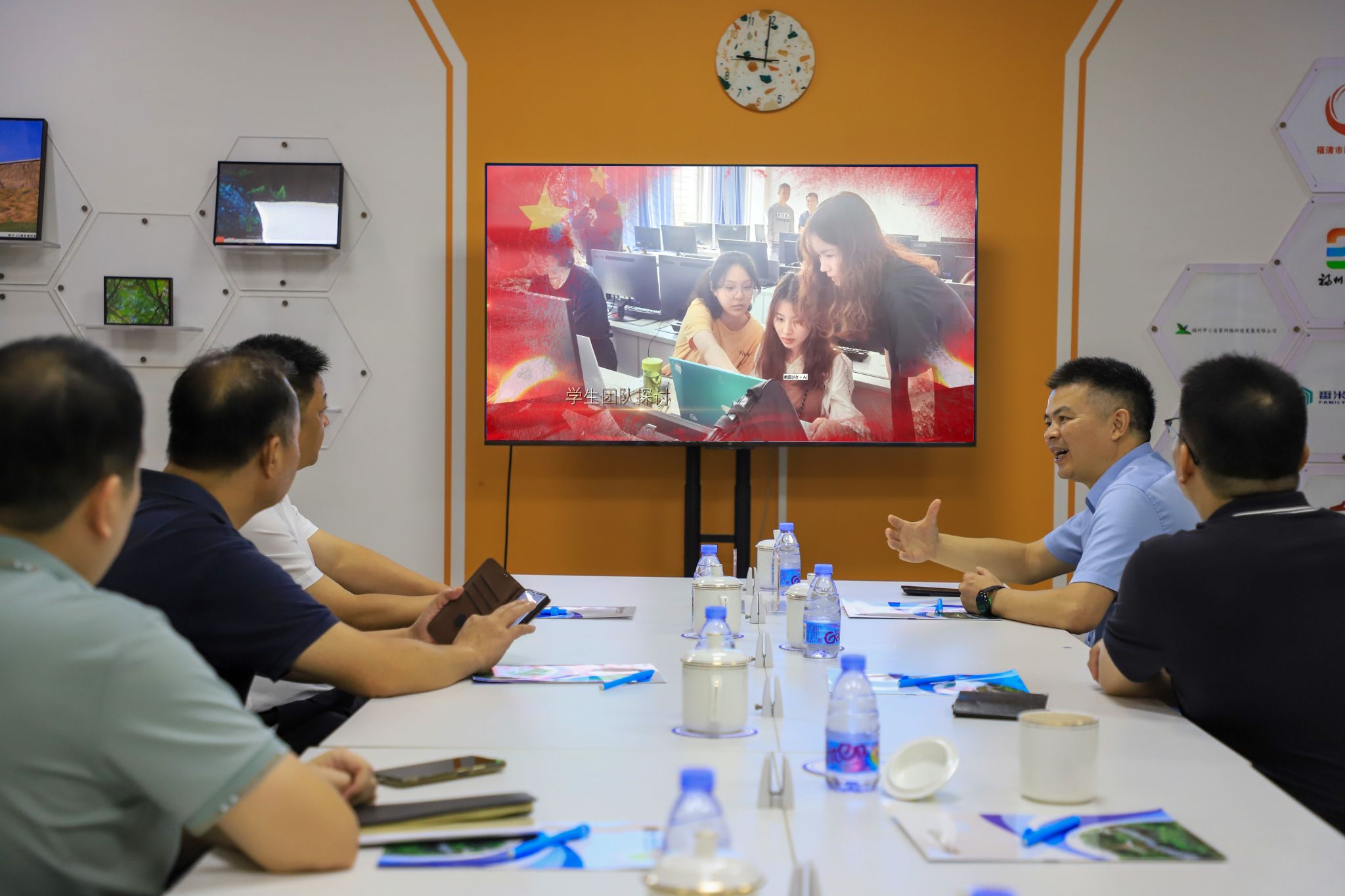 陈致烽院长首先对福清市委宣传部对学院事业发展表示感谢,并向林传烜部长一行介绍学院的专业建设、教学成果及产教融合实践情况。林部长对学院在数字媒体领域的人才培养和创新给予了高度肯定。