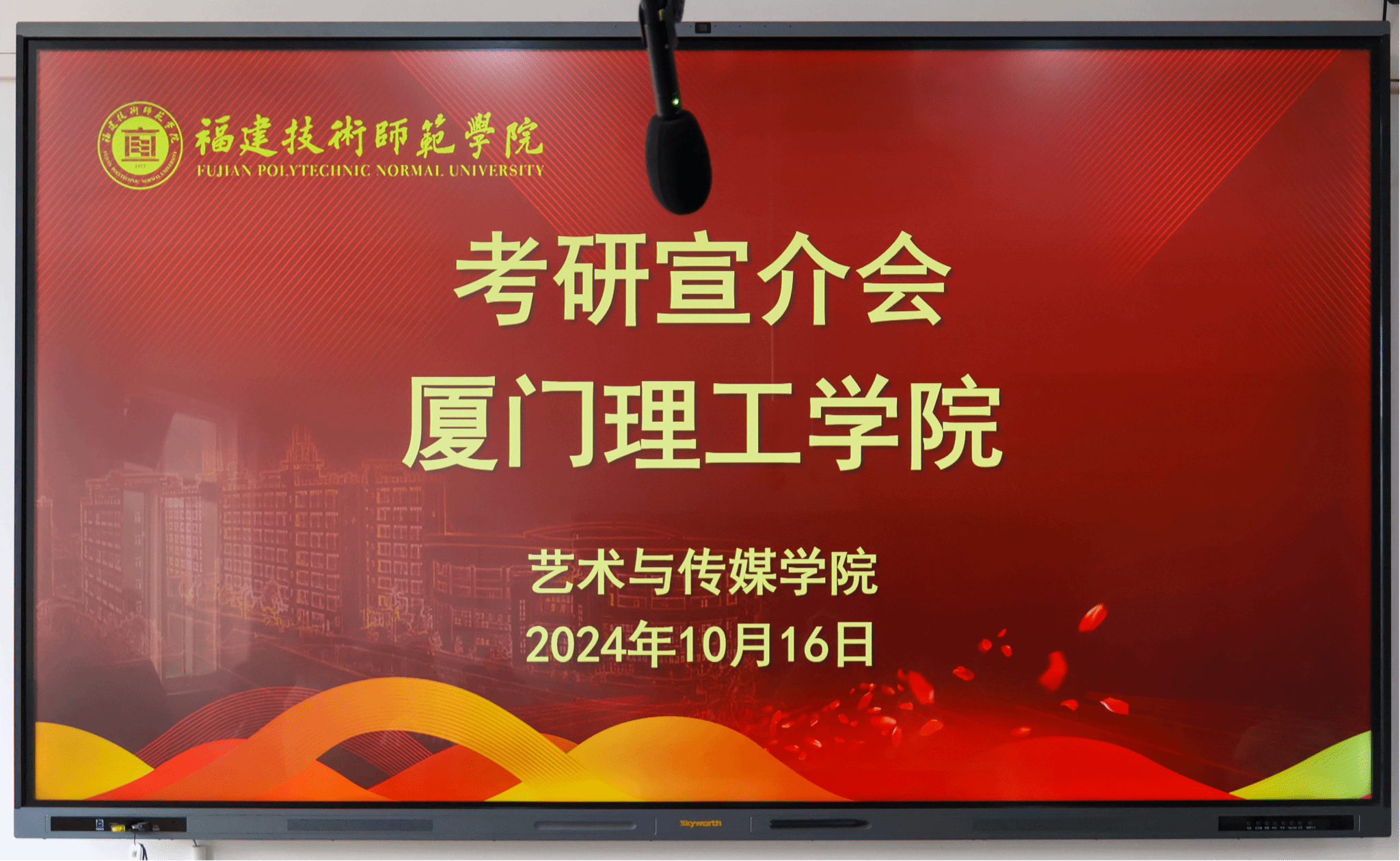 为营造积极考研氛围,推进学风建设,我院于1016日下午在J304J305教室举办考研宣讲推介会。此次会议邀请了厦门理工学院文化产业与旅游学院文化产业系系主任何圣捷副教授、研究生秘书张一欣老师以及闽江学院新闻传播学院院长戴程教授、数字媒体艺术系系主任王衍老师、研究生招生科陈婷婷老师一行。会议由我院团委负责人林璐璐老师主持,2122 23 级各专业意向考研学生参加。