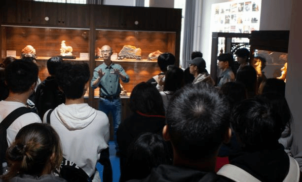 下午,学生们在专业主任吴绍平老师的带领下,参观了福州冠森堂寿山石非遗展览馆和寿山石非遗技艺实训基地。通过聆听老师的详细讲解以及与实训基地学长学姐们的互动交流,学生们对寿山石文化的雕刻历史和艺术价值有了初步的认识,并深刻体会到了传统工艺中石材、技艺与现代审美的积极融合。在参观过程中,学生们被雕刻艺术的精细与复杂性所折服,对寿山石雕刻艺术产生了浓厚的兴趣。