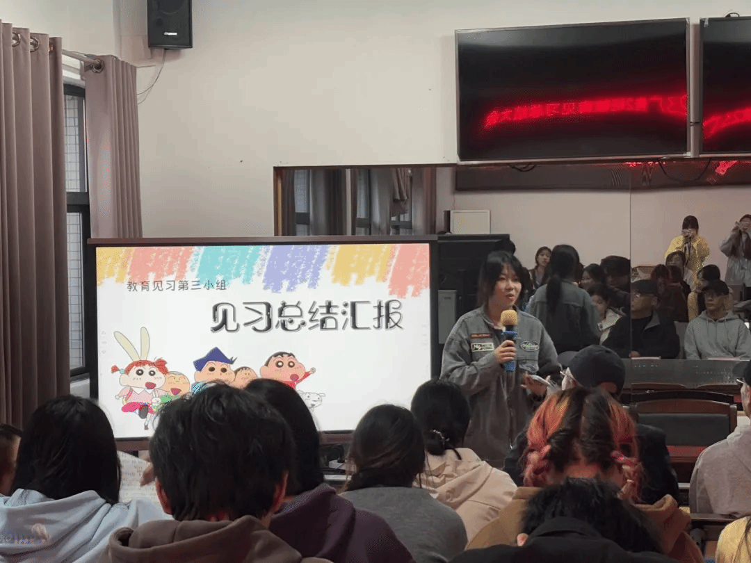 总结会上,各小组组长逐一上台分享一周的见习成果,从听课感悟、班级管理策略、教研活动参与等多个角度进行了生动的交流,表达了对见习学校的文化底蕴、教育教学理念及教师职业的新认识和理解。同学们深刻认识到作为一名教师,不仅要有扎实的学科知识,更要掌握灵活多样的教学方法,关注学生的个体差异,用心营造积极活跃的课堂。