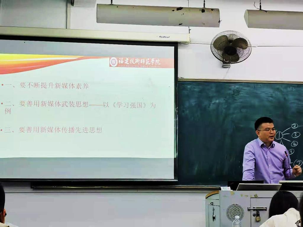 陈致烽教授结合专业理论知识与实践,从提升新媒体素养、善用新媒体武装思想——以《学习强国》为例、善用新媒体传播先进思想等方面展开了精彩的授课,提出新媒体环境下大学生党员的新要求。他强调,当代大学生是互联网的原住民,因而更容易也更应该提升自我的新媒体素养。作为学生党员,应该清楚地认识新媒体的功效和作用,认识到新媒体具有信息量大、互动性强的特点,学会善用新媒体来筛选和鉴别信息,洞察新闻的价值,从而借助影像、动画等新媒体信息资源汲取党在历史与发展中积淀的思想与精神力量。