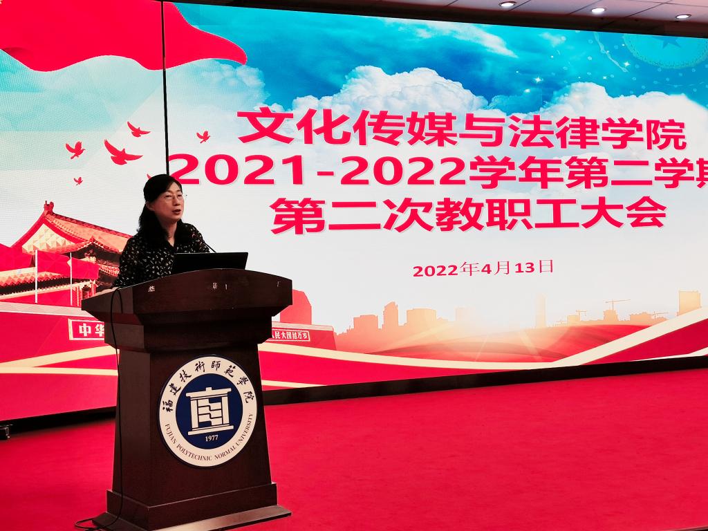 4月13日下午,我院于科学楼学术报告厅召开2021-2022学年第二学期第二次教职工大会。院党委书记郭永云、院长陈致烽,副院长谢西娇和温志拔等全体教职工参会。