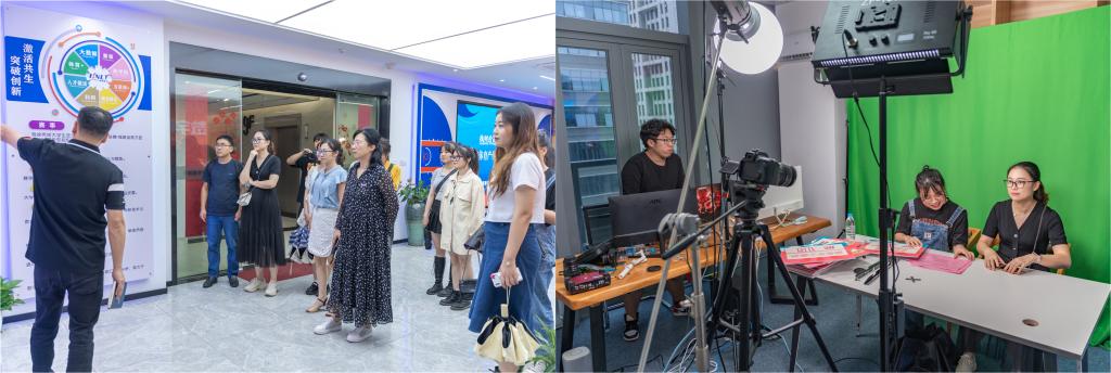 双方代表在签约结束后都肯定了此次人才孵化培养的必要性,并探讨双方合作的深入性,力求在今后教学中打破传统,引入前沿产业的示范案例,注重学生和社会的对接,不断拓展基地的合作项目和发展空间,为社会未来发展作出更大贡献。最后,我院学生代表参观学习了企业文化及新媒体直播流程。