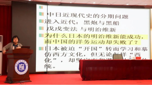 聘任仪式结束后,林祁教授应邀为我院师生开展主题为《“风骨”与“物哀”——中日文学关系研究》的讲座。讲座伊始,林祁教授以自身东瀛留学的经历为出发点,详细解答了中日关系的实质与其研究意义及方法。接着,她以“道”字代表中国文化,与日本文化中的“静寂阴柔”作比较,指出大陆的“风骨”与岛国的“物哀”的区别,进而细致剖析产生区别的根源所在。随后,她以“芥川龙之介与鲁迅”、“川端康成《雪国》”、“大江健三郎与莫言”为例,深刻阐述了“风骨”与“物哀”的联系,以及“物哀”对于中日文化发展的意义与积极性。