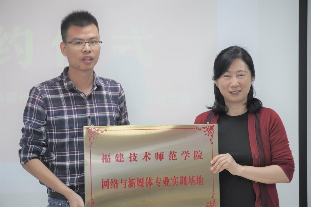 公司有关负责人黄清椿等对我院师生的到来表示热烈欢迎,双方就行业现状、专业发展、合作模式等有关话题进行了沟通交流,并形成了多项建设性共识。在双方共同瞩目下,黄清椿与谢西娇副院长签署了网络与新媒体、广播电视编导、广告学专业实训基地合作协议,并举行挂牌仪式。