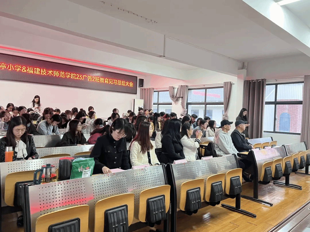2024年12月6日下午,我院2023级广告学(师范)2班教育见习的总结大会在福清市瑞亭小学召开。福清市瑞亭小学教导处主任郑敏、美术组组长钟霞,我院广告学专业主任林惠仙、副主任付晶晶,本次教育见习全体指导老师和23广告2班全体学生参加了本次总结会。