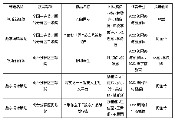 福建技术师范学院第八届全国大学生数字编辑创新大赛获奖名单